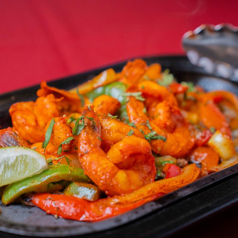 Tandoor is a large cylindrical clay oven in which heat is produced from constant burning coal at the bottom. Tandoori dishes are grilled on a skewer without touching any surface. Naan breads are prepared by slapping on the inner hot wall of tandoor. Tandoori specialities are served sizzling, with onions, bell peppers and a side of rice.